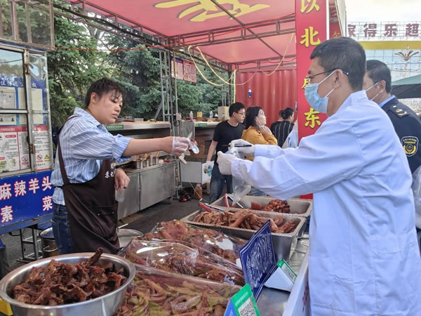 截至目前,市場(chǎng)監(jiān)管局共發(fā)放攤位信息公示板144個(gè)、《誠(chéng)信經(jīng)營(yíng)承諾書(shū)》144份。共采樣食材118批次,品種包含肉串、豆制品、海鮮、烤餅、面筋、面條、熟食、無(wú)骨雞爪、雞脖、雞排、雞柳、米糕、果蔬、蛋堡等,檢驗(yàn)項(xiàng)目包括亞硝酸鹽、瘦肉精、硫酸鋁鉀、甲醛、孔雀石綠、吊白塊、過(guò)氧化值、農(nóng)殘、雙氧水、嘔吐毒素等項(xiàng)目。現(xiàn)場(chǎng)檢測(cè)全部合格。