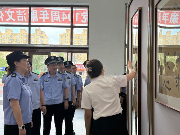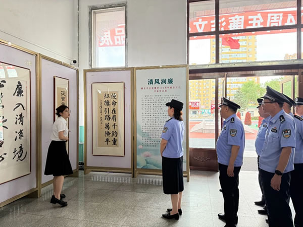 肇東市公安局組織參觀“慶祝建黨 104 周年廉潔文化書畫作品展”