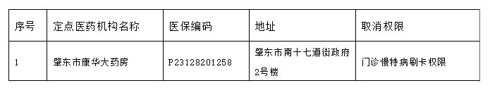 根據(jù)《國家醫(yī)療保障局令(第2號(hào))》《國家醫(yī)療保障局令(第3號(hào))》《綏化市醫(yī)療保障定點(diǎn)醫(yī)療機(jī)構(gòu)服務(wù)協(xié)議》《綏化市醫(yī)療保障定點(diǎn)零售藥店服務(wù)協(xié)議》《綏化市基本醫(yī)療保險(xiǎn)定點(diǎn)醫(yī)療機(jī)構(gòu)定點(diǎn)零售藥店管理辦法》的相關(guān)規(guī)定,現(xiàn)對(duì)零售藥店作出取消門診慢特病刷卡決定,公示如下: