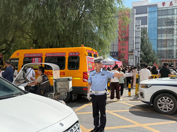 開學當日,護學崗民警提前到崗到位,在學校門口及周邊重點路段疏導交通,引導接送學生車輛有序停放,避免交通擁堵,確保學生安全、快速出入校園。在護學過程中,護學崗民警加強與學校安保人員的溝通協(xié)作,指導學校安保人員嚴格落實校園門禁制度,確保校園內部安全;同步開展安全宣傳教育,提醒學生遵守交通規(guī)則,注意自身安全。