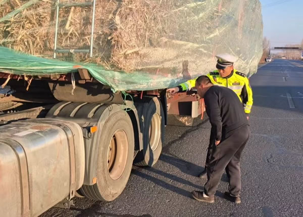 “師傅,您這車苫布沒固定牢,行駛中容易被風(fēng)吹開,秸稈灑落不僅影響交通,還可能引發(fā)事故,我們幫您加固一下!痹跈z查現(xiàn)場(chǎng),每當(dāng)發(fā)現(xiàn)苫布松散、捆綁不牢的車輛,民警都會(huì)主動(dòng)協(xié)助駕駛員重新遮蓋,調(diào)整苫布位置、拉緊繩索、扣緊卡扣,反復(fù)檢查確認(rèn)穩(wěn)固后才放行。并再三叮囑駕駛員途中要定時(shí)檢查,遇大風(fēng)、降水等天氣務(wù)必減速慢行,用實(shí)際行動(dòng)贏得了駕駛員的理解與配合。