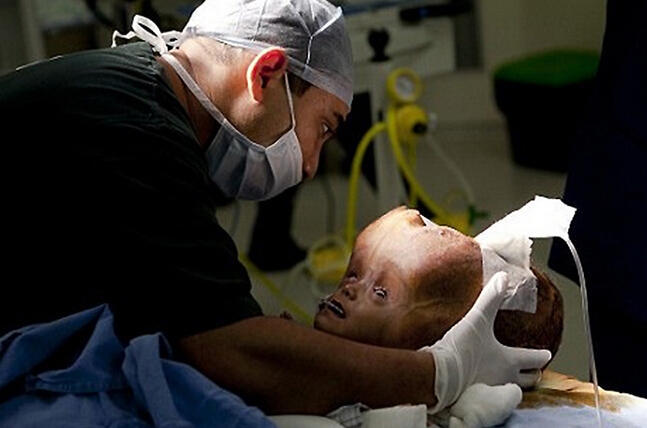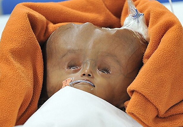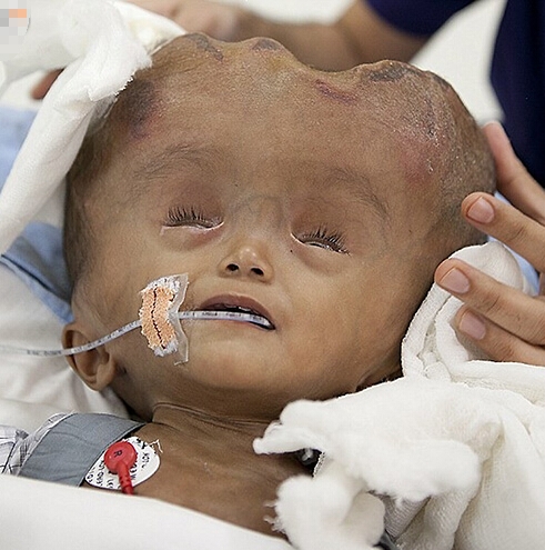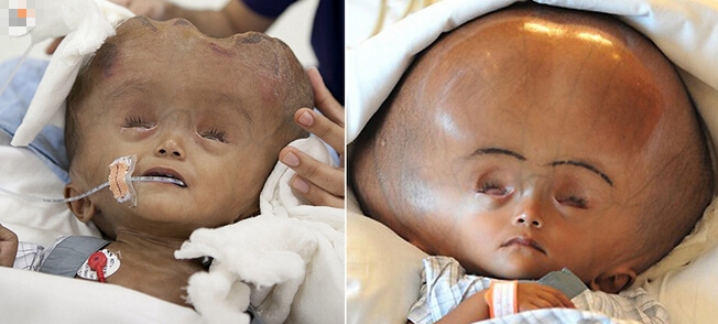 印度患腦積水女嬰手術(shù)后頭圍縮小 術(shù)前如外星人(1)