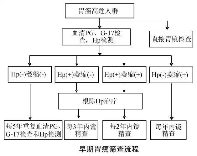 胃癌高危人群應該按照下面這個中國抗癌協(xié)會推薦的流程進行胃癌篩查: