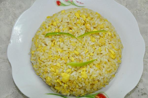 做法:雞蛋只取蛋黃,米飯刮松、小蔥洗凈后切成蔥花。蛋黃調(diào)入少許鹽打散,將米飯倒入蛋黃液中,浸泡,拌勻,包管每粒米上都沾上蛋黃液。熱鍋倒油,油溫升高后放入米飯,翻炒,炒至米粒疏松。出鍋前關(guān)火撒上蔥花即可。