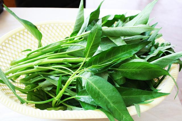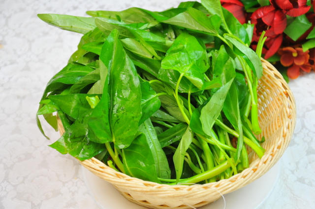 空心菜又名蕹菜、無心菜、竹葉菜, 春、夏季采取其莖葉鮮用, 具有很高的食用價(jià)值及藥用價(jià)值?招牟嗽谖覈兄凭玫脑耘鄽v史, 早在殷商時(shí)代, 人們就將這種野生植物栽培為蔬菜了, 《本草綱目拾遺》記載:“解毒熟食之, 亦可先搗服” , 說明人們?cè)诤茉缇鸵呀?jīng)知道其藥用價(jià)值, 時(shí)至今日, 空心菜已是老百姓日常生活中最喜愛吃的蔬菜之一。這個(gè)季節(jié)又到了吃空心菜的最好時(shí)候了,葉子鮮嫩爽口,這時(shí)候不吃真是有點(diǎn)兒可惜!