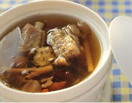 排骨1根,枸杞,紅棗12枚,當(dāng)歸4片。排骨洗凈,飛水去異味后放入沙鍋,加枸杞、紅棗、當(dāng)歸、蔥、姜片,大火燒開(kāi)再小火燉至排骨熟爛,起鍋前加入鹽、雞精調(diào)味即可。此款湯品可以滋陰潤(rùn)燥、養(yǎng)顏?zhàn)o(hù)膚。