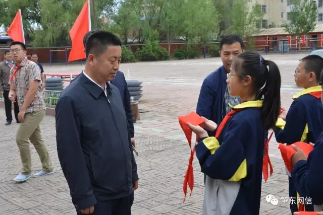 節(jié)日的校園處處歡聲笑語(yǔ)。進(jìn)入校園,四名小學(xué)的學(xué)生代表熱情地為李延春獻(xiàn)上鮮艷的紅領(lǐng)巾,以表歡迎。