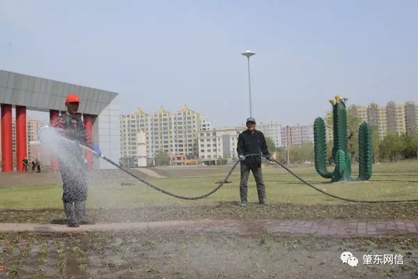近日,肇東市園林工人正在對(duì)道路、公園、綠地等處的串紅、矮牽牛、孔雀草、萬(wàn)壽菊等花卉進(jìn)行澆水養(yǎng)護(hù)。