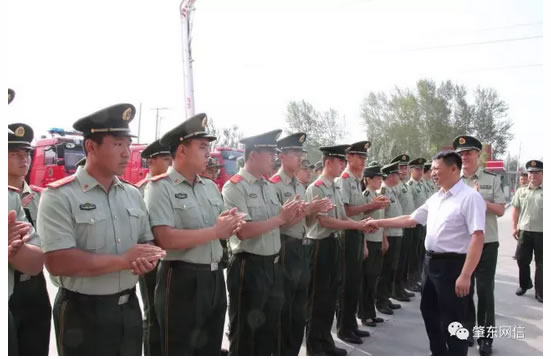 慰問(wèn)中,張偉志說(shuō),一直以來(lái),全市廣大消防官兵擔(dān)負(fù)著我市搶險(xiǎn)救災(zāi)的重要職責(zé),你們恪盡職守,忘我工作,時(shí)刻奮戰(zhàn)在第一線,尤其在各類急難險(xiǎn)災(zāi)害和社會(huì)突發(fā)事件中,沖鋒在前、毫不畏懼,召之即來(lái)、來(lái)之即戰(zhàn)、戰(zhàn)之即勝,為肇東經(jīng)濟(jì)建設(shè)、為保衛(wèi)全市人民群眾的生命財(cái)產(chǎn)安全做出了突出貢獻(xiàn),我代表市委市政府和全市人民對(duì)你們的辛勤付出表示感謝,祝你們節(jié)日快樂(lè)!