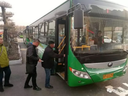 剛剛走出火車(chē)站的乘客坐上方便快捷的公交車(chē)