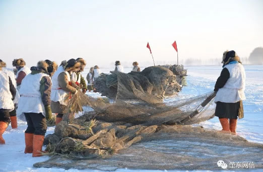 大似海有個(gè)古老的蒙古名,叫烏珠古爾泊,意為最南端尖狀湖。大似海曾經(jīng)是郭爾羅斯先民游牧封地,當(dāng)時(shí)的漁民用魚叉、魚鉤和魚亮子等工具捕魚。勤勞智慧的東北漁民不斷發(fā)明創(chuàng)造,逐步演變成今天這種多片連接的巨型冬網(wǎng),長期實(shí)踐活動(dòng)形成了一整套的冬捕技巧和特有的祭祀風(fēng)俗,蘊(yùn)含和散發(fā)出古老漁獵文化的非凡魅力。冬捕對(duì)于當(dāng)?shù)氐木用駚碚f,不僅僅是捕魚也是一種獨(dú)特的生活方式,寄托著他們的歡樂以及對(duì)美好生活的向往和希望。