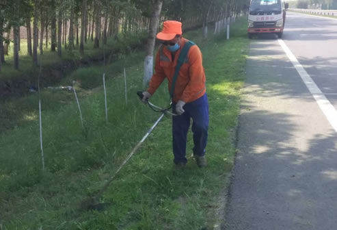 養(yǎng)護(hù)人員明確高草清理范圍,積極做好轄區(qū)內(nèi)公路路肩、邊坡高草修剪工作。作業(yè)時(shí)養(yǎng)護(hù)人員采用打草機(jī)進(jìn)行打草,達(dá)到路肩、邊坡的“草坪化”效果,保證修剪質(zhì)量。