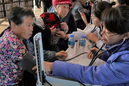 活動中,市第一醫(yī)院領(lǐng)導(dǎo)及醫(yī)護(hù)人員還帶著三萬元的慰問品,看望慰問這里的老人,并為老人們測量血壓、檢查身體,與老人們共度佳節(jié)。