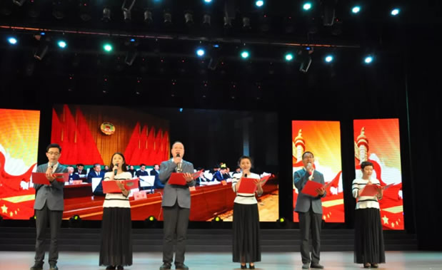 隨后,朗誦會正式開始。一聲聲詞句深情飽滿、一件件歷史蕩氣回腸,朗誦會在全體市委常委的詩朗誦《中國夢》中拉開帷幕。市委常委們的朗誦時而激情豪邁、時而深沉含蓄,字字鏗鏘有力,他們用振奮人心的話語和緬懷革命先烈的詩詞回顧和謳歌了建黨98周年、新中國成立70周年來的滄桑巨變與光輝歷程,又充分展現(xiàn)了立足新時代下,廣大甜城兒女在市委的堅強領導下,邁著堅定有力的步伐,向著實現(xiàn)中華民族偉大復興的中國夢、兩個“一百年”奮斗目標奮勇前行的使命和擔當。