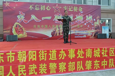 7月30日,朝陽街道辦事處南城社區(qū)的黨員干部及志愿者們來到市武警中隊(duì)舉辦了“慶八一、迎國慶”慰問演出。