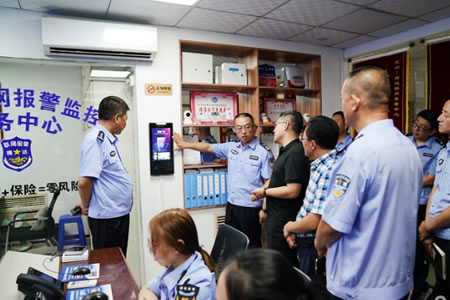 2019年8月1日肇東市公安局長張國輝同志一行參觀騰達(dá)安泰保安服務(wù)有限公司,對騰達(dá)公司110聯(lián)網(wǎng)報(bào)警平臺系統(tǒng)運(yùn)營,物聯(lián)網(wǎng)安防技術(shù)應(yīng)用,智慧社區(qū)智能門禁人臉識別系統(tǒng)前沿技術(shù),安防產(chǎn)品及設(shè)施,智能家居系統(tǒng)等高度認(rèn)可,詳細(xì)了解騰達(dá)聯(lián)網(wǎng)報(bào)警監(jiān)控服務(wù)中心運(yùn)行機(jī)制,“人防+技防+保險(xiǎn)=零風(fēng)險(xiǎn)”的服務(wù)模式,并就如何進(jìn)一步加強(qiáng)安防產(chǎn)品推廣和應(yīng)用、社會資源聯(lián)網(wǎng)、“智能化小區(qū)”綜合平臺應(yīng)用等進(jìn)行深入座談交流,征求安防企業(yè)在整合資源和提升技術(shù)方面的意見和建議。