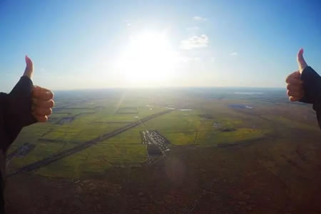 據(jù)了解,俱樂部教練團(tuán)隊(duì)均為有著數(shù)千次跳傘經(jīng)驗(yàn)及擁有國際認(rèn)證的《雙人跳傘教練證書》的專業(yè)跳傘教練組成?梢詾楦鞯赜慰吞峁╇p人高空跳傘體驗(yàn)、單人高空跳傘培訓(xùn)、單人跳傘等多項(xiàng)跳傘服務(wù)。當(dāng)天上午,有十余名毫無跳傘經(jīng)驗(yàn)的游客,乘坐“大棕熊100”型飛機(jī),升至3200米高空后,與教練固定在一起,一躍而下,在經(jīng)歷了35秒左右的自由落體運(yùn)動(dòng)后,傘包順利打開,俯瞰龍江大地美景,然后安全降落在指定地點(diǎn)。