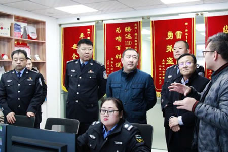 2019年12月4日綏化市公安局黨委委員、副局長(zhǎng)卜啟軍深入肇東檢查指導(dǎo)工作,肇東市公安局局長(zhǎng)張國(guó)輝,副局長(zhǎng)尹德峰陪同一行參觀黑龍江騰達(dá)安泰保安服務(wù)有限公司,對(duì)騰達(dá)公司110視頻聯(lián)網(wǎng)報(bào)警平臺(tái)系統(tǒng)運(yùn)營(yíng),校園安全一鍵報(bào)警系統(tǒng),物聯(lián)網(wǎng)智能安防技術(shù)應(yīng)用,智慧社區(qū)智能門禁人臉識(shí)別系統(tǒng)前沿技術(shù),安防產(chǎn)品及設(shè)施等高度認(rèn)可,詳細(xì)了解騰達(dá)公司110聯(lián)網(wǎng)報(bào)警、校園安全一鍵報(bào)警、人臉識(shí)別智能門禁、智慧小區(qū)社區(qū)綜治管理、視頻大數(shù)據(jù)集中管理、智慧消防電力火災(zāi)預(yù)警等相關(guān)系統(tǒng)平臺(tái)功能及應(yīng)用,并就如何進(jìn)一步加強(qiáng)安防產(chǎn)品推廣和應(yīng)用、社會(huì)資源聯(lián)網(wǎng)、智能化小區(qū)建設(shè)等進(jìn)行深入座談交流,聽(tīng)取安防企業(yè)在整合資源和提升技術(shù)方面的匯報(bào)和建議。他指出,安防建設(shè)是社會(huì)治安防控體系的核心內(nèi)容,是創(chuàng)新社會(huì)管理和服務(wù)民生的重要方式。安防企業(yè)要從戰(zhàn)略性角度出發(fā),依靠政府主導(dǎo)、公安支持、企業(yè)先行,找準(zhǔn)立足點(diǎn),站穩(wěn)出發(fā)點(diǎn),抓住有利機(jī)遇,多方整合社會(huì)資源,加大建設(shè)投入力度,打造具有自身亮點(diǎn)特色的智能化聯(lián)防報(bào)警系統(tǒng)及智慧化安防小區(qū),發(fā)揮維護(hù)穩(wěn)定、保障民生、服務(wù)群眾的重要作用,為平安肇東建設(shè)作出更大貢獻(xiàn)!