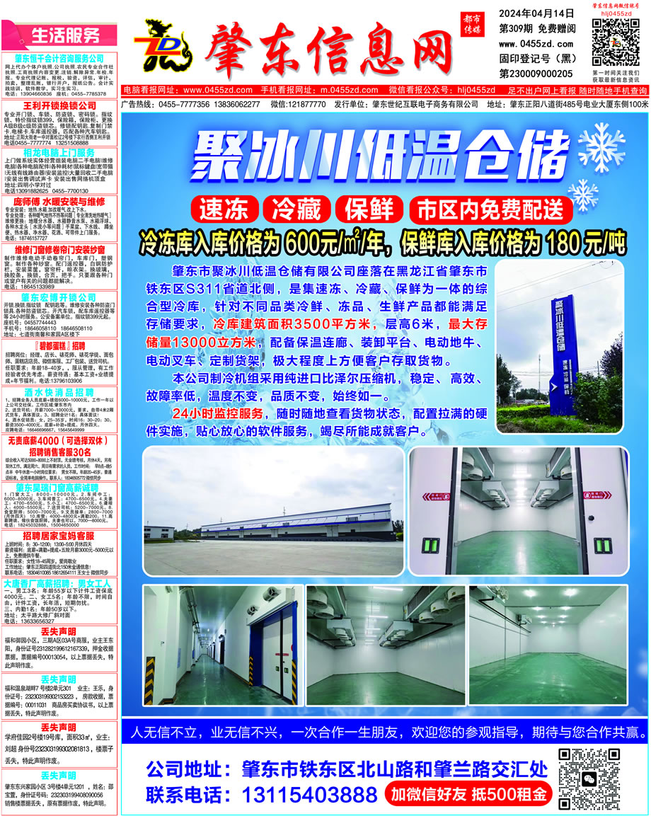 肇東信息網(wǎng)DM報(bào)紙2024年4月14日第309期