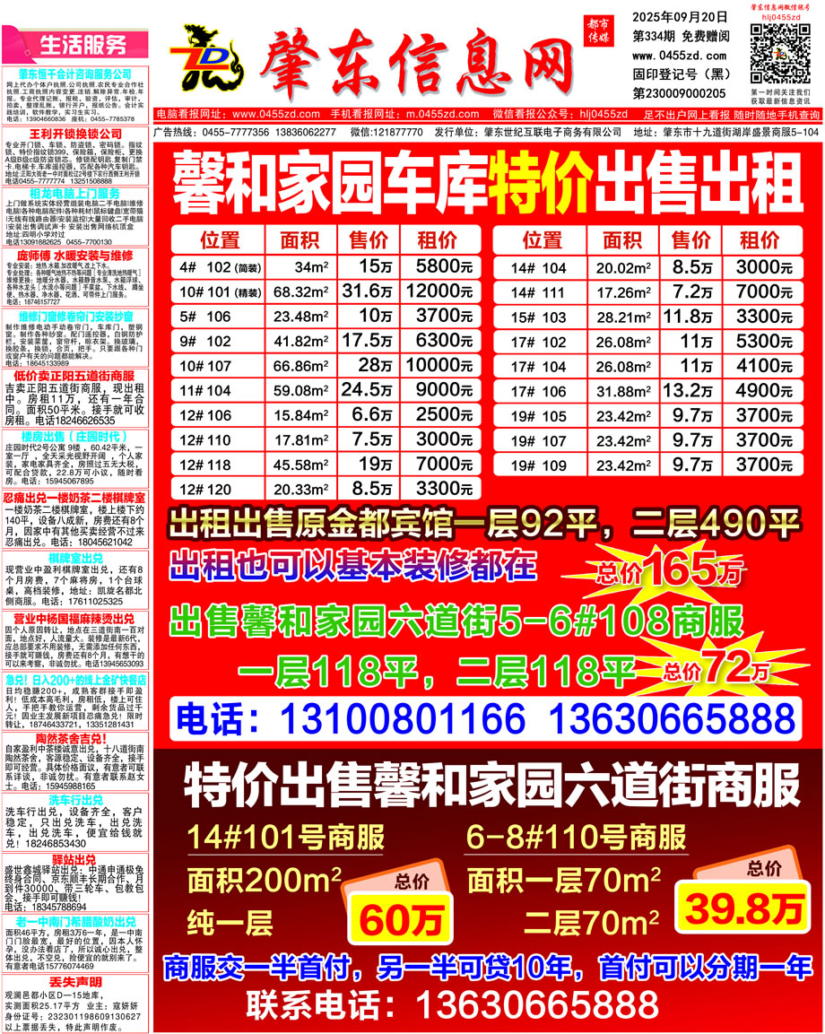 肇東信息網(wǎng)DM報紙2025年9月20日第334期