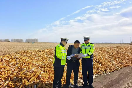 肇東公安交管大隊(duì)民警為農(nóng)民兄弟鋪就秋收平安路