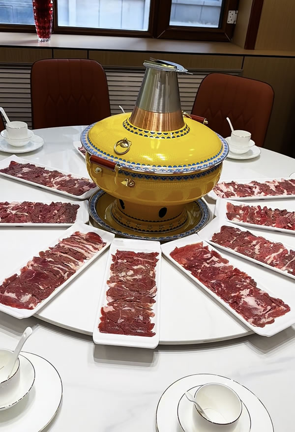 提前預(yù)約老板可以為您私人定制景泰藍(lán)鍋火鍋,羊肉都是內(nèi)蒙草標(biāo)羊、手切鮮羊肉。