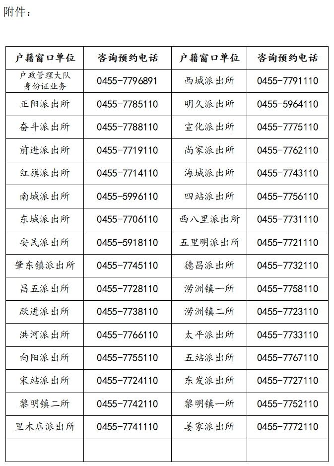 附件:公安機關(guān)戶籍窗口單位咨詢及預(yù)約電話