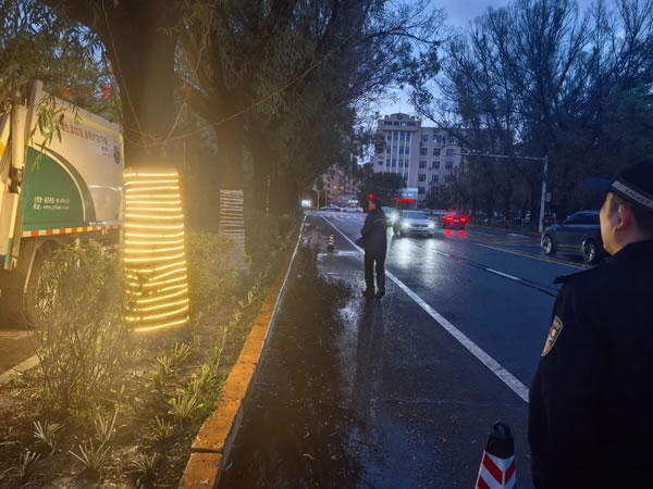6月9日晚8時許,巡特警大隊民警在小餅節(jié)例行開展巡邏任務(wù),在巡邏至小餅節(jié)東門時,隱約聽到有電弧聲音,便立即上前查看,發(fā)現(xiàn)疑似漏電。巡特警大隊的民警了解情況后,為避免人民群眾受到傷害,立即與主管單位采取了聯(lián)系。主管單位到達(dá)現(xiàn)場后,巡特警大隊民警與其齊心協(xié)力對疑似漏電處進(jìn)行了搶修,圍觀群眾皆對民警的及時舉措表達(dá)了贊揚(yáng)。
