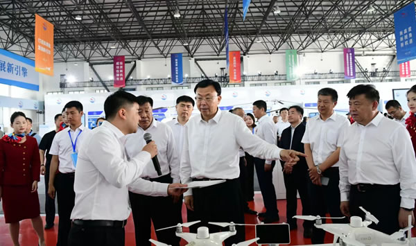 張寶偉、李元學(xué)等在肇東北大荒通用機場參觀無人機及航材。