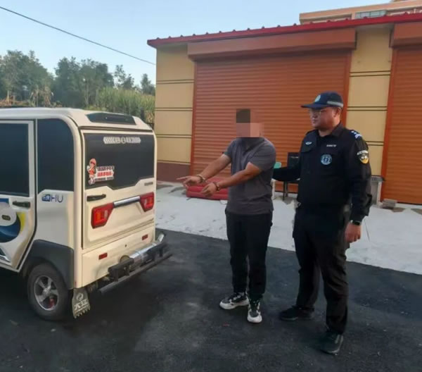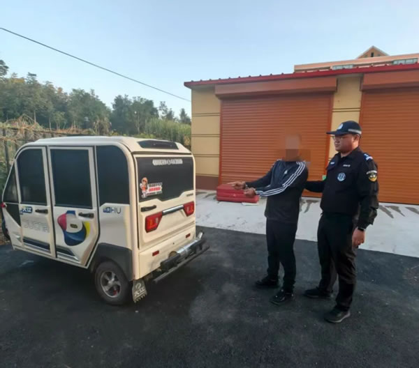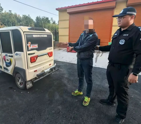 巡特警大隊民警根據(jù)現(xiàn)場情況,初步認定邵先生的三輪車被他人盜走,隨著對該案件的調(diào)查及調(diào)取周邊監(jiān)控,發(fā)現(xiàn)17日當(dāng)晚18時40分在政府廣場被盜三輪車位置附近有三名男性,目標清楚,分工明確,有計劃的將邵先生的電動三輪車盜竊開走,根據(jù)沿途交通卡口視頻排查發(fā)現(xiàn),肇東市五里明鎮(zhèn)居民張某、郭某、穆某確定為盜開邵先生電動三輪車嫌疑人,且該三人已將該被盜電動三輪車停放在肇東市五里明鎮(zhèn)一小區(qū)居民樓下。