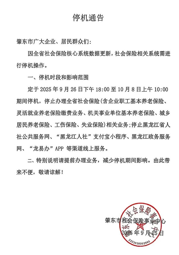 停機(jī)公告