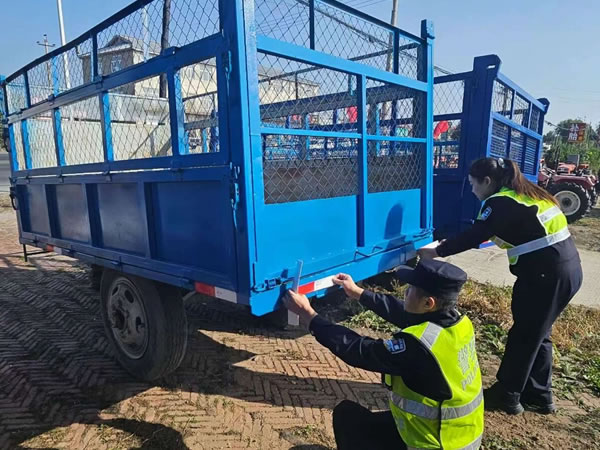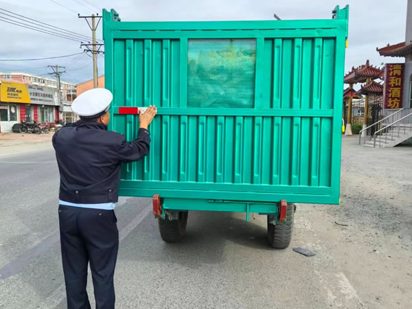 同時,積極開展“亮尾行動”。民警深入田間地頭和農(nóng)戶家中,為沒有粘貼反光標(biāo)識和反光標(biāo)識陳舊的農(nóng)用車輛及農(nóng)業(yè)機械粘貼反光標(biāo)識,消除事故隱患。農(nóng)民朋友有的是沒時間或不知道到哪里買反光標(biāo)識,宣傳民警親自上門免費粘貼,為他們解決了實際困難,農(nóng)民朋友表示由衷的感謝。