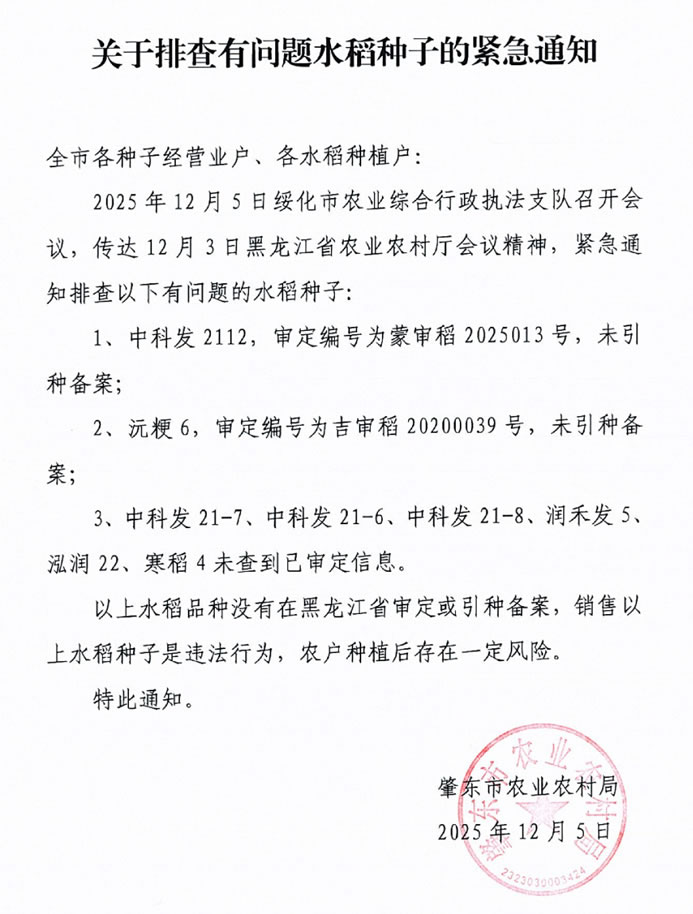 關于排查有問題水稻種子的緊急通知 關于排查有問題水稻種子的緊急通知